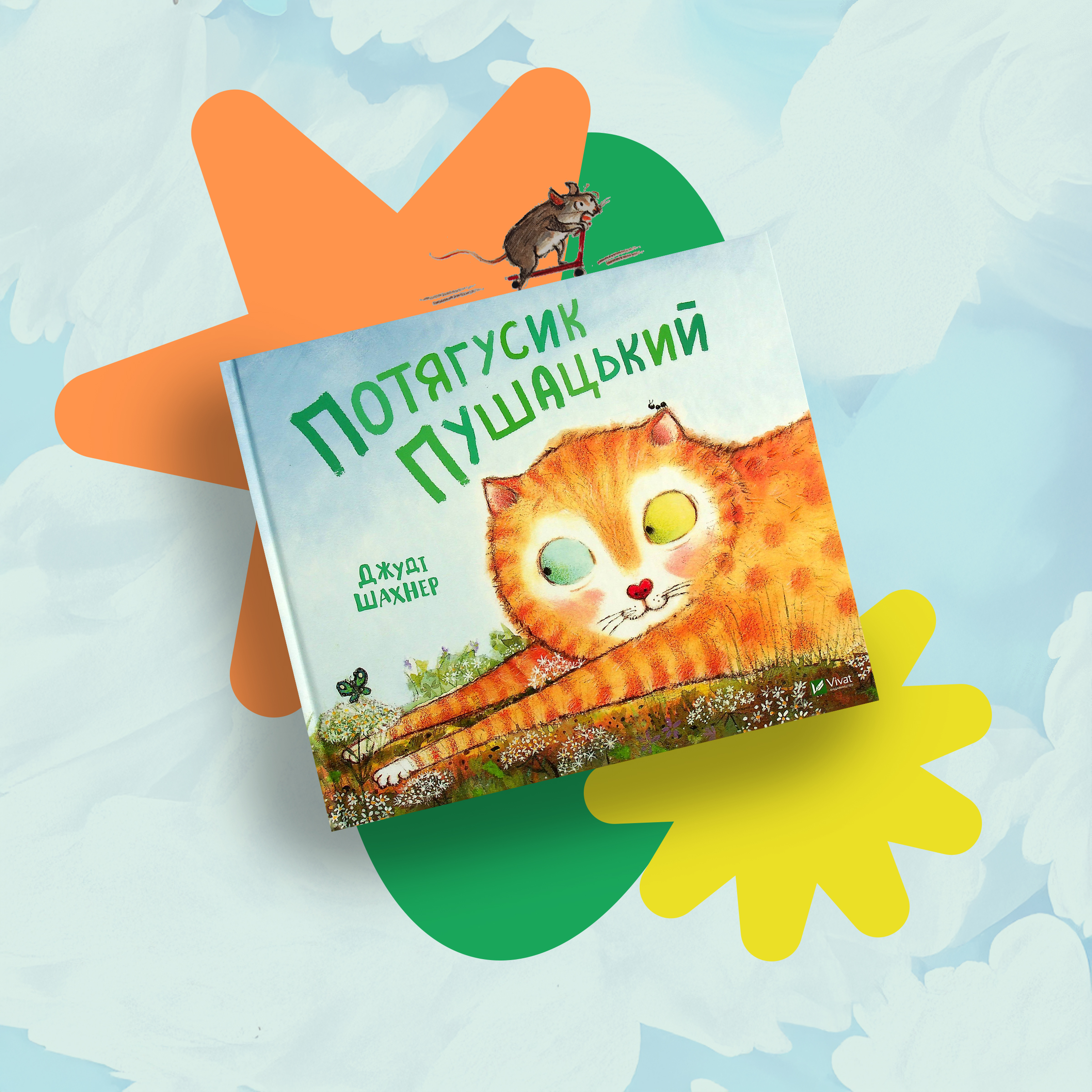 “Потягусик Пушацький” Джуді Шахнер –  віршована історія, яка підкорить і вас, і дитину. Видавництво “Vivat”. Рудий кіт Потягусик – “...перевертайко, ноговухочесач, із кущів вилітайко і дерев обіймач!” – має чималу родину, з якою ділить тісну картонну коробку.