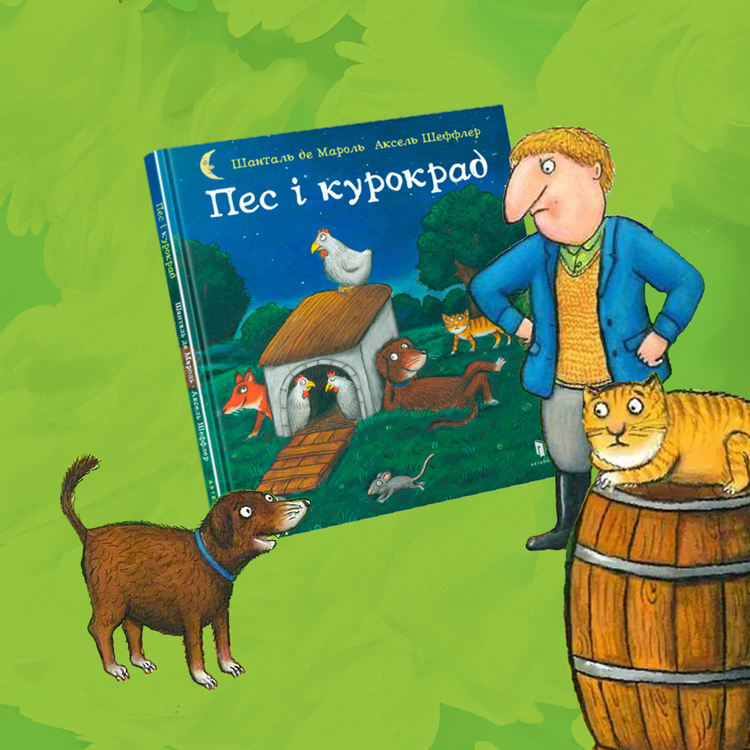 Нарешті трохи прози. Відкрийте стару добру казку “Пес і курокрад” видавництва “Артбукс”. Автор – Шанталь де Мароль, ілюстратор – Аксель Шеффлер (так, він же творець “Шустя і Шуні”, ви ж пам’ятаєте, правда?)