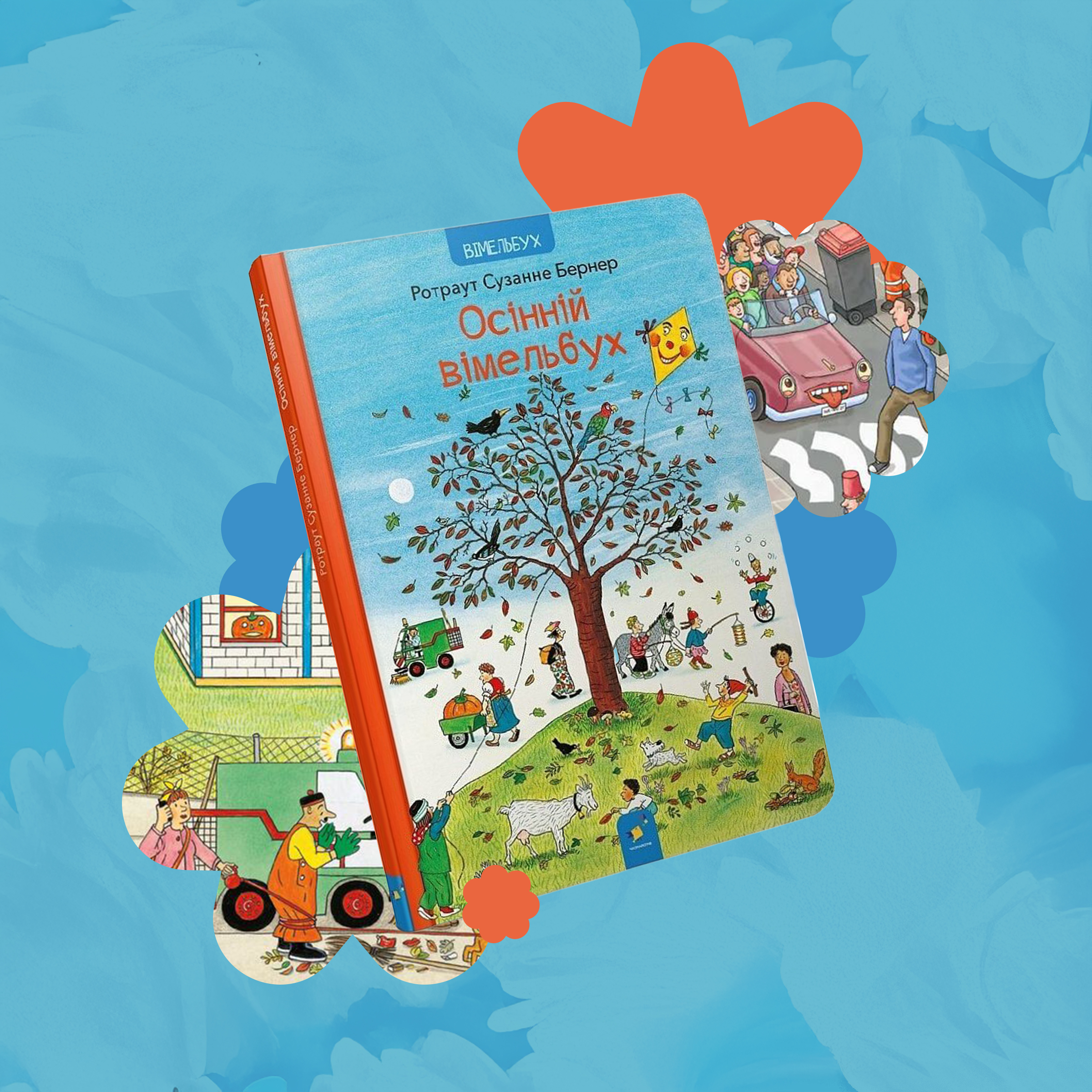 І наостанок – у містечку Мала Метушня теж уже настала осінь. Час везли гарбузи на виставку, прибирати листя і готуватися до свят. Та спершу – відшукайте загубленого папугу. Безліч маленьких історій на сторінках “Осіннього віммельбуха” Ротраут Сузанни Бернер. Лише зазирніть. Видавництво – “Час майстрів”. Якому ми також завдячуємо і за “Ламу Ламу”, і за “Бодьо”.